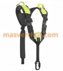 El arnés de pecho incluye un punto de enganche esternal metálico conforme a la norma EN 361, así como bucles de organización en los hombros para ordenar el sistema de retención o línea de vida. Su construcción modular permite, además, integrar otros accesorios como un ascendedor de pecho, manteniendo la versatilidad del conjunto.