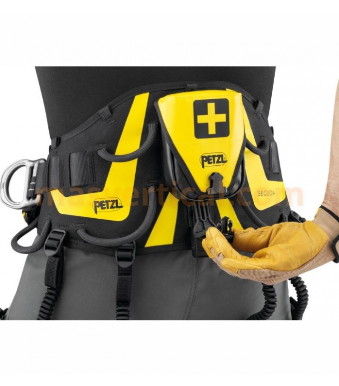 PetzlBolsa para guardar artículos de primeros auxilios o un botiquín compacto en la parte posterior del arnés.