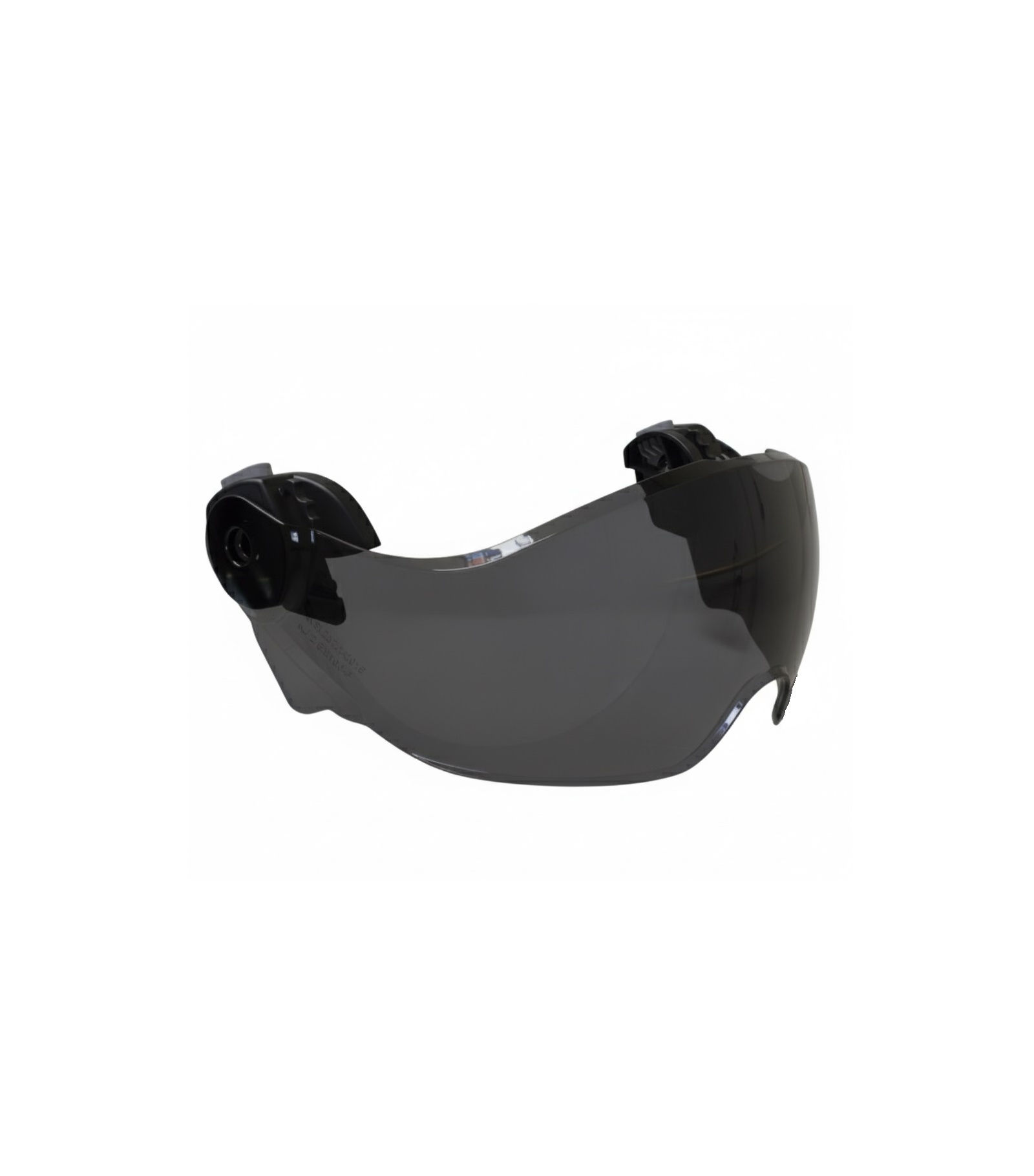Pantalla de protección ocular con filtro solar oscuro, diseñada para proteger de la radiación solar y del impacto de partículas a alta velocidad. Compatible con los cascos de la serie OREKA II, se instala fácilmente sin herramientas gracias a los adaptadores Q-ik incluidos. Adecuada para trabajos en exterior en condiciones de elevada luminosidad.