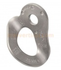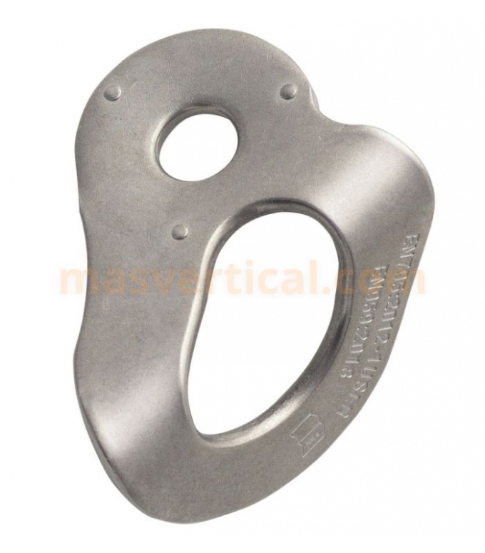 Su diseño incorpora un borde interno redondeado que reduce el desgaste del mosquetón y una geometría optimizada que orienta correctamente el conector, especialmente útil en techos y desplomes donde la dirección de la carga es más crítica. Los tres pins antirrotación, la superficie de contacto total y la arandela cónica (Conical Washer) aseguran una fijación estable, controlada y resistente, convirtiéndola en una solución fiable tanto para equipadores como para profesionales del acceso por cuerda.