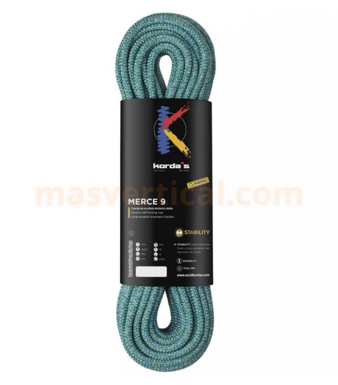 La cuerda dinámica doble MERCE 9 de Korda's destaca por su manejabilidad excepcional y durabilidad mejorada, gracias a sus acabados de serie que la hacen ideal para iniciación en alpinismo, guiado o cordadas de hasta tres personas. Incorpora el sistema exclusivo STABILITY, pionero en unir alma y funda para eliminar completamente el deslizamiento de funda (0%) y el molesto "efecto calcetín", asegurando un comportamiento uniforme en todo momento. Este acabado mantiene la estabilidad dimensional a lo largo de su vida útil, reduciendo el encogimiento progresivo.