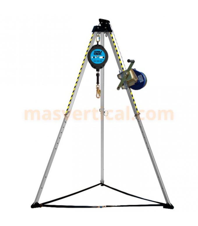 El Kit Trípode TRIP 10 de Irudek es un sistema completo para descenso y ascenso en espacios confinados, pozos y conductos subterráneos. Este kit incluye trípode, torno, anticaídas (disponible en varias longitudes) y bolsa de transporte, ofreciendo una solución integral y portátil para trabajos verticales en entornos exigentes.