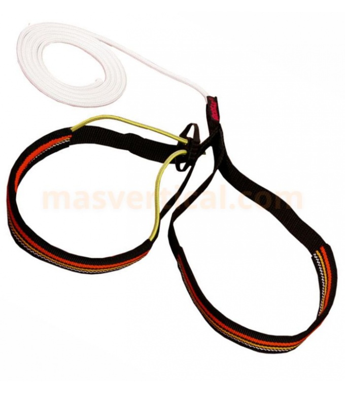 El pedal doble Rodcle 120 está fabricado en cinta con cordino de Dyneema de 120 cm, pensado para ascensos por cuerda, espeleología, barranquismo y maniobras donde se requiere un apoyo estable del pie. La longitud es regulable mediante nudo, lo que permite adaptar el pedal a distintas alturas y técnicas de progresión.