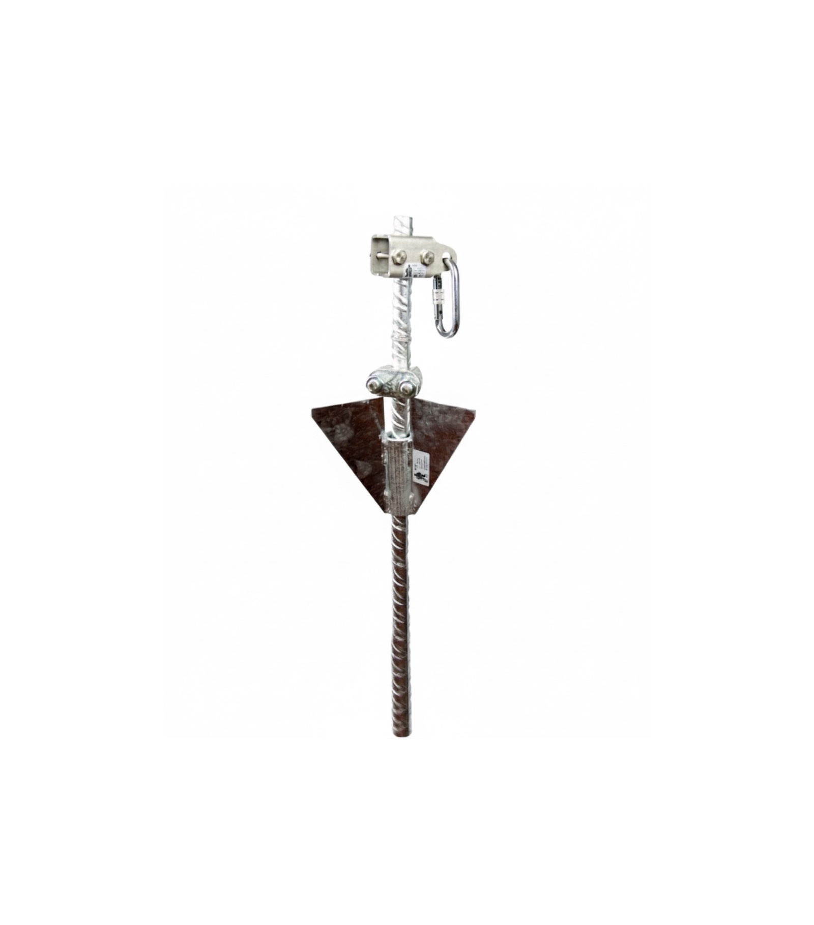 Dispositivo de anclaje para sistemas anticaídas, diseñado para ser instalado en tierra mediante medios mecánicos, en un pozo de 1,5 metros de profundidad. Resulta perfecto en construcción de obra lineal, limpieza y desbroce de taludes. En general, en cualquier situación en el entorno de taludes donde no existen soluciones o posibilidades para el aseguramiento de trabajadores.
