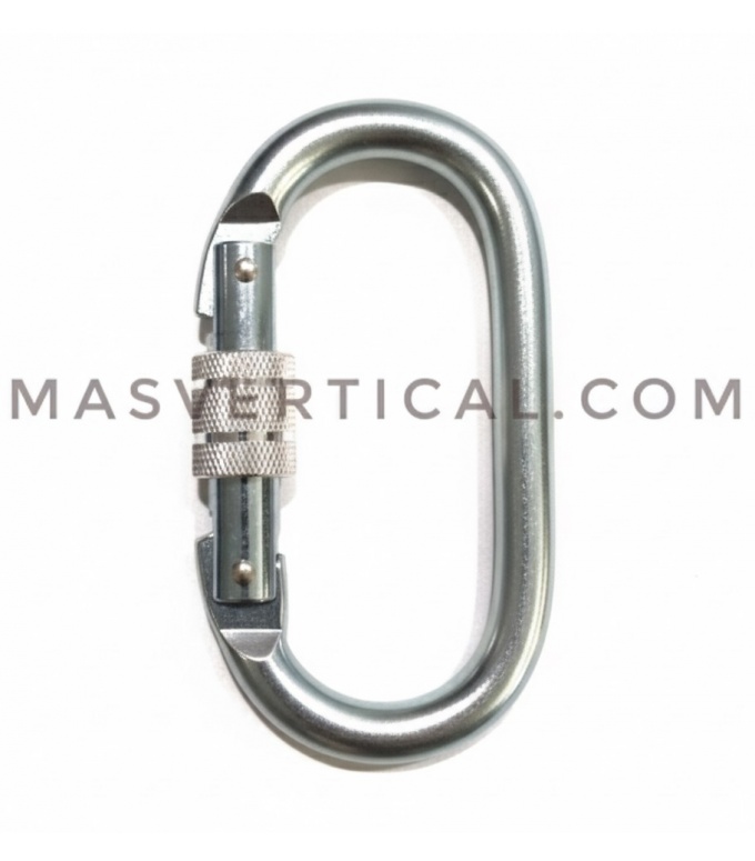 Qi'RocMosquetón de acero de alta resistencia con cierre de seguridad por rosca.